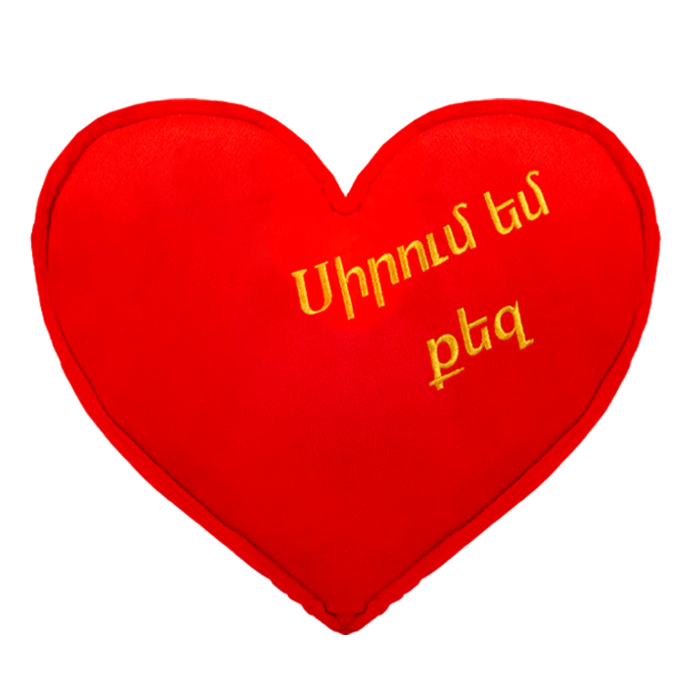 Բարևիկ, ես Բարձ սրտիկն եմ։ Իմ ապագա ընկերոջը նվիրելու եմ շա՜տ կարևոր բաներ՝ սեր, փափկություն, ջերմություն ու անուշ-անուշ երազներ։
